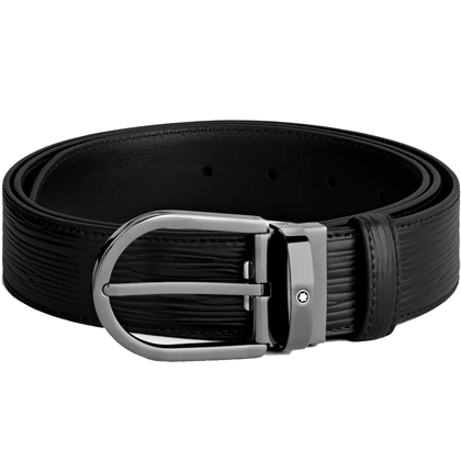 Черный кожаный ремень с подковообразной пряжкой 35мм от магазина премиальных ручек Premium Pens в Хабаровске.