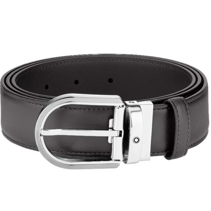 Кожаный ремень с пряжкой в форме подковы серого цвета 35 мм от магазина премиальных ручек Premium Pens в Хабаровске.